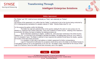 After Login, Bidder Agreement page will appear. Click on " I Agree"