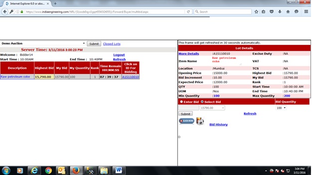 Click on Auction ID Link, to Bid for the selected Lot.